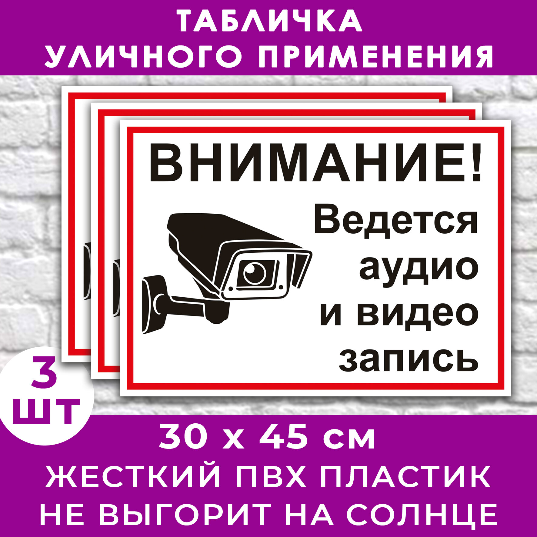 Набор табличек 3 шт. «Внимание! Ведется видеонаблюдение и аудио запись» (45х30см): сравнение цен, характеристики, фото, актуальное наличие и цены.