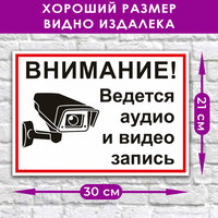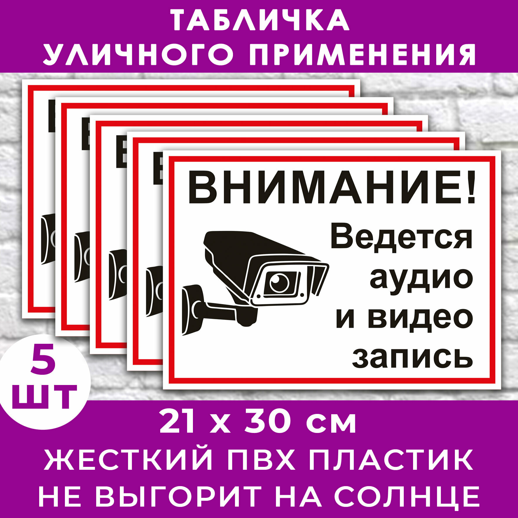 Набор табличек 5 шт. «Внимание! Ведется видеонаблюдение и аудио запись», 20х30см, ПВХ 3мм, УФ-печать: сравнение цен, характеристики, фото, актуальное наличие и цены.