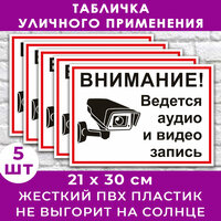 Купить Набор табличек 5 шт. «Внимание! Ведется видеонаблюдение и аудио запись», 20х30см, ПВХ 3мм, УФ-печать с доставкой по всей России.