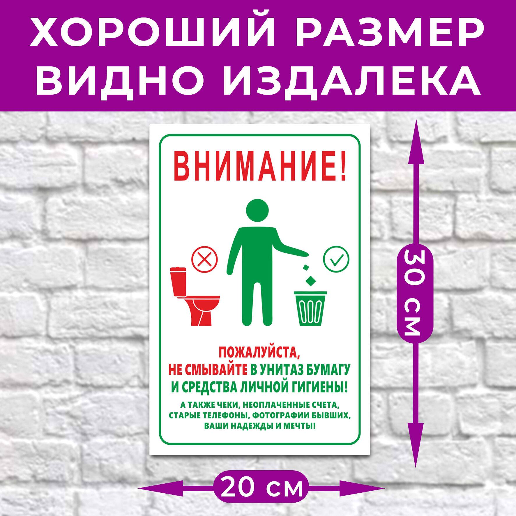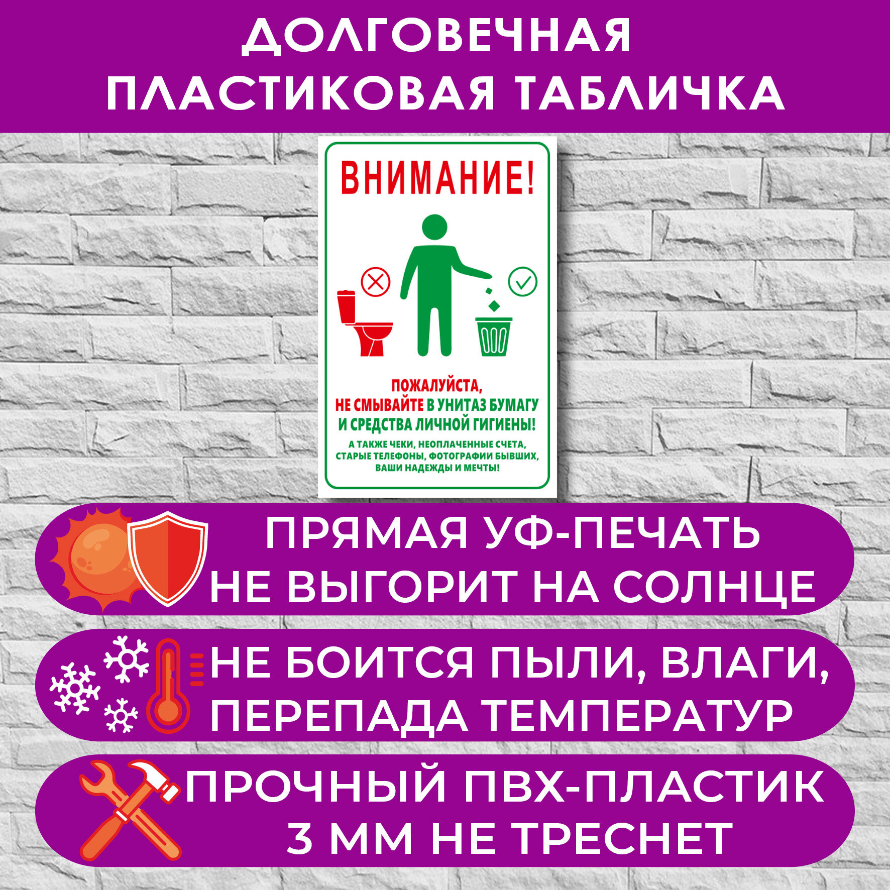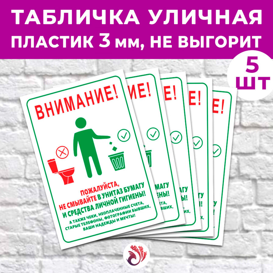 Купить Набор табличек 5шт «Внимание! Пожалуйста, не смывайте в унитаз бумагу и средства личной гигиены!», 30х20см, ПВХ 3мм, УФ с доставкой по всей России. Набор табличек 5шт «Внимание! Пожалуйста, не смывайте в унитаз бумагу и средства личной гигиены!», 30х20см, ПВХ 3мм, УФ: сравнение цен, характеристики, фото, актуальное наличие и цены.