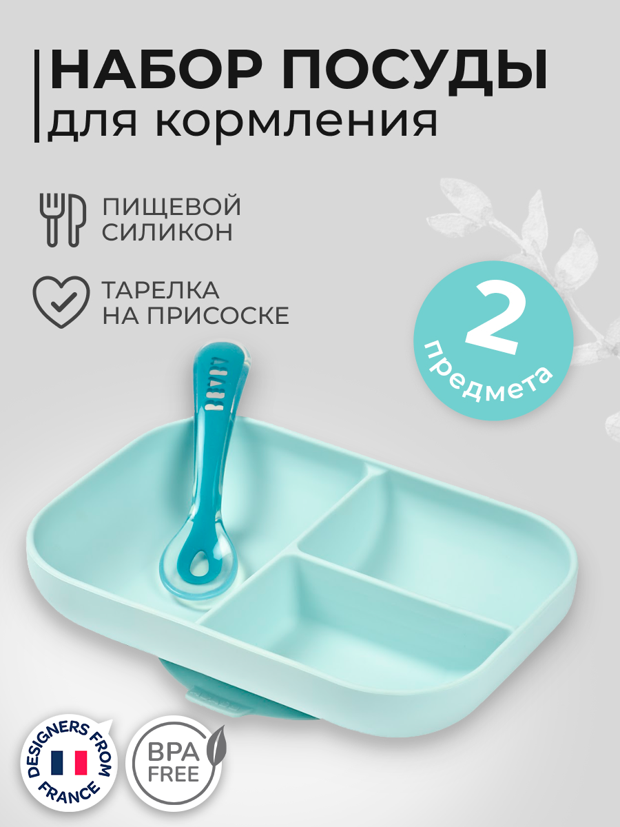 Силиконовый набор посуды для кормления от французской марки Beaba. В комплекте тарелка с делением на отсеки – позволяет сохранить вкусы каждого продукта и разделения различных текстур. Тарелка с присоской для крепления к столу или к стульчику для кормления не позволит малышу перевернуть обед. Ложка эргономичной формы поспособствует обучению ребенка первым навыкам самостоятельного питания. Удобная форма, стойкий к любому воздействию материал. Рекомендуемый возраст: с 4 месяцев.