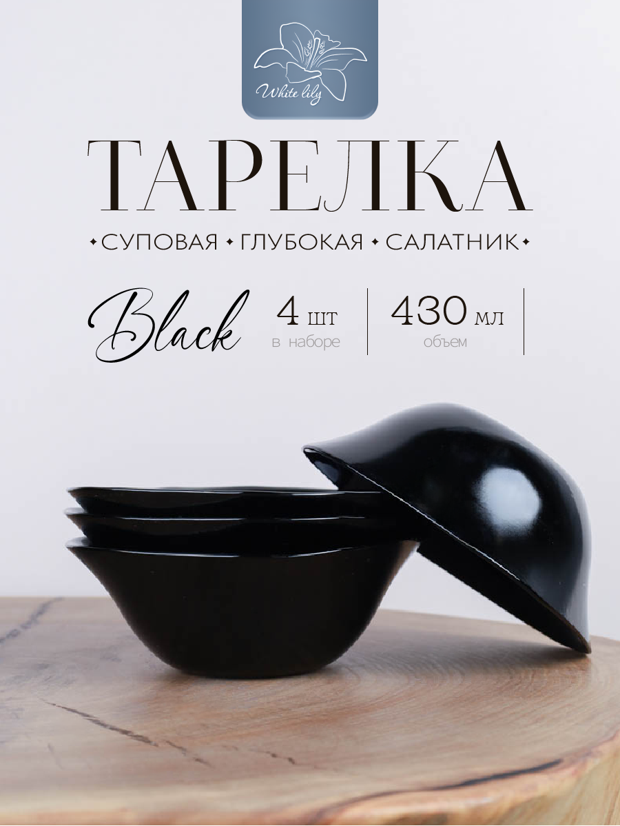 Купить Набор тарелок 4 шт 430 мл Черный квадратный White lily с доставкой по всей России. Набор тарелок 4 шт 430 мл Черный квадратный White lily: сравнение цен, характеристики, фото, актуальное наличие и цены.