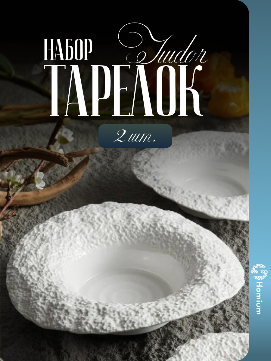 Набор дизайнерских керамических тарелок Homium, Tudor, 2 шт, D21, глубокие, цвет белый: сравнение цен, характеристики, фото, актуальное наличие и цены.