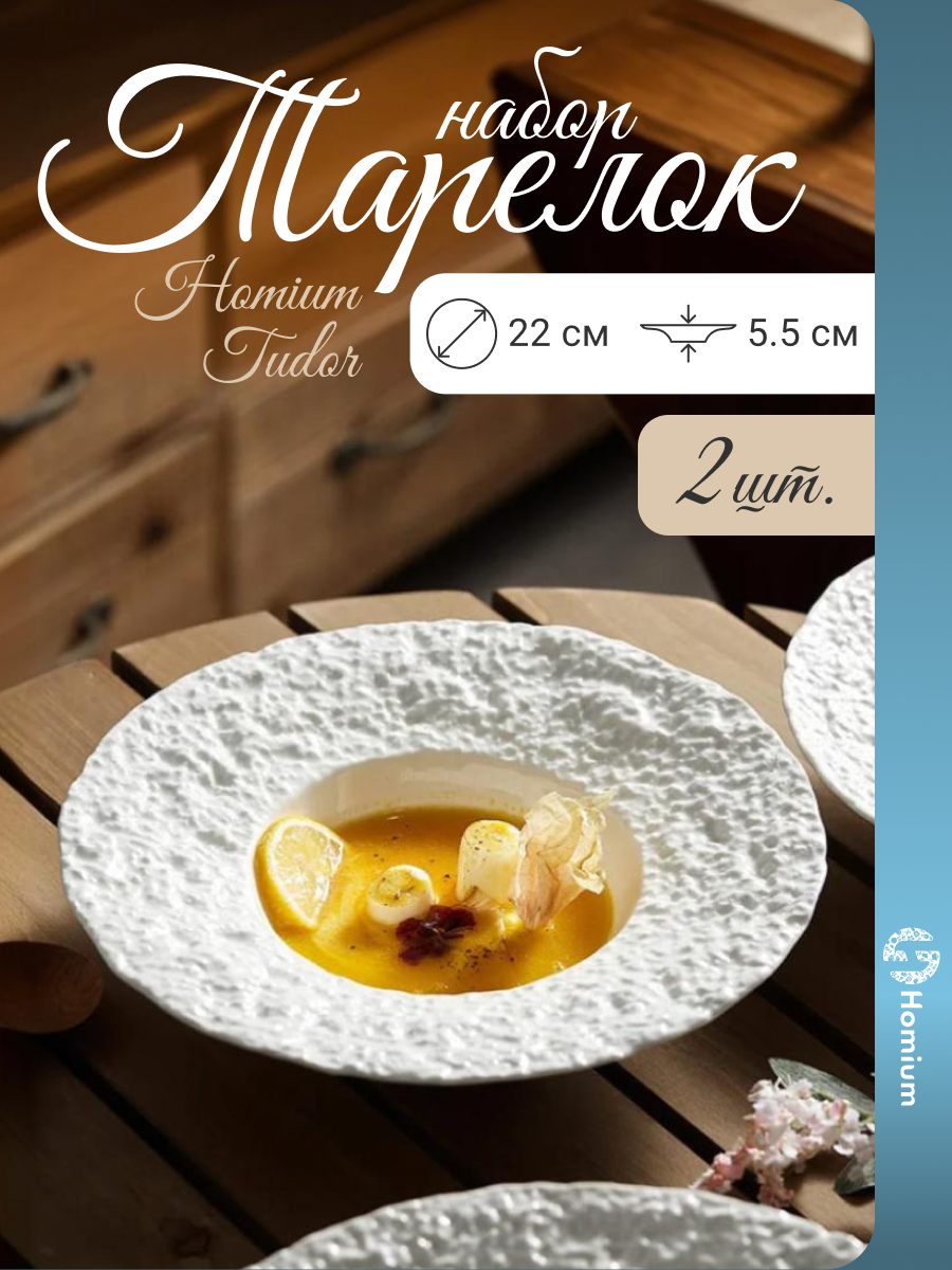 Набор тарелок для первых и вторых блюд Homium, Tudor, 2 шт, D22, керамика, цвет белый: сравнение цен, характеристики, фото, актуальное наличие и цены.