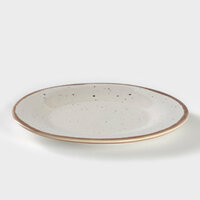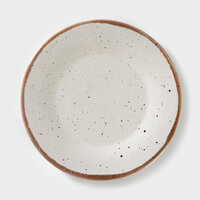 Теплая белая глянцевая глазурь и аппетитные крапинки и каемка. Роспись тарелок дорабатывается вручную разноцветной глазурью, поэтому каждая тарелка по-своему уникальна.