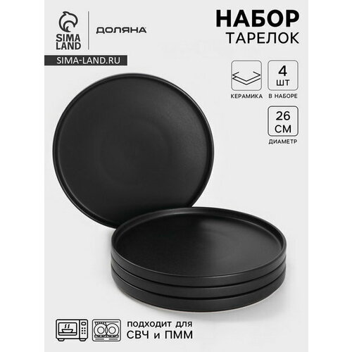 Артикул: 2272-768. Размеры: 2 x 26 x 26 см, Материал: Керамика, Диаметр: 26 см, Вес: 3914 гр, Размер упаковки: 9.5 x 26.5 x 26.5 см, Рисунок: Нет, Набор: Да, В наборе, шт: 4, Форма: Круг, Можно мыть в посудомоечной машине: Да, Можно использовать в СВЧ-печи: Да, Матовая поверхность: Да, Для горячего: Да, Цвет: Чёрный, Тематика: Однотонная, Текстура: Гладкая, Вид тарелки: Плоская, Особенности: Без особенностей, Вид: Тарелки. Стильный комплект из четырёх плоских тарелок чёрного цвета. Минималистичный дизайн подчеркнёт презентабельность любого блюда, а 26 см диаметра легко вместят полную порцию. Практичность и удобствоВыдерживает высокие температуры подавайте горячие блюда без опасенийМатовая керамическая поверхность не бликует и скрывает мелкие следы от пальцевПодходят для разогрева в микроволновке и мытья в посудомоечной машинеЧёрный цвет остаётся насыщенным после многократного использованияДля когоЧетыре одинаковые тарелки решают вопрос сервировки для семьи или небольшой компании. Гладкая текстура на ощупь приятнее обычной керамики. когда хочется простого, но выразительного оформления стола этот комплект работает идеально. Универсальное решение для повседневных обедов и праздничных ужинов. Сочетается с посудой большинства цветов, не перебивая внимание с основного блюда.
