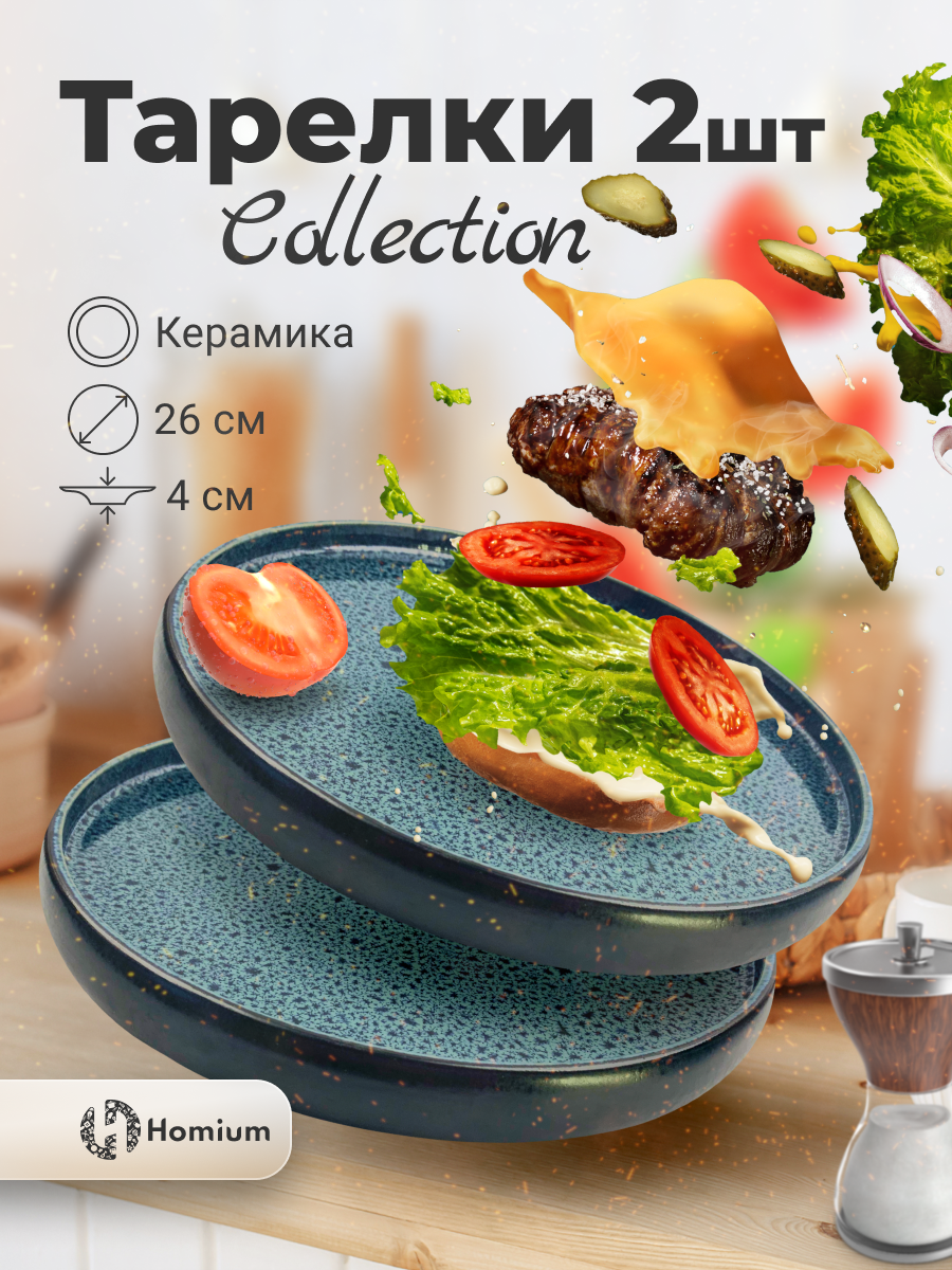 Набор тарелок Homium Collection, керамическая тарелка для горячих блюд и гарниров, D26см, голубой/черный, 2шт.: сравнение цен, характеристики, фото, актуальное наличие и цены.