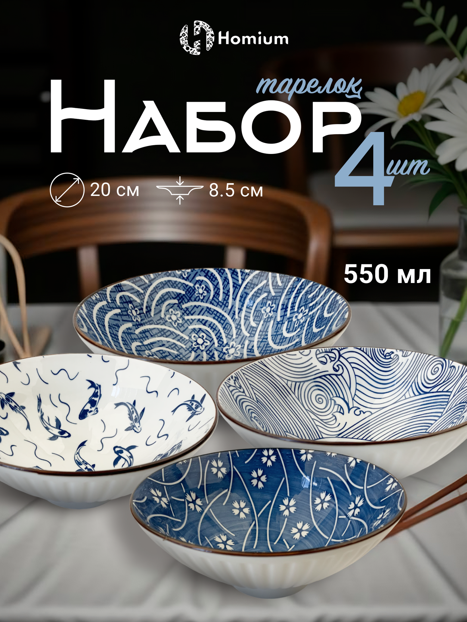 Купить Набор из 4 тарелок Homium, Japanese Collection, глубокие керамические тарелки, цвет белый/синий, диаметр 20 см с доставкой по всей России. Набор из 4 тарелок Homium, Japanese Collection, глубокие керамические тарелки, цвет белый/синий, диаметр 20 см: сравнение цен, характеристики, фото, актуальное наличие и цены.