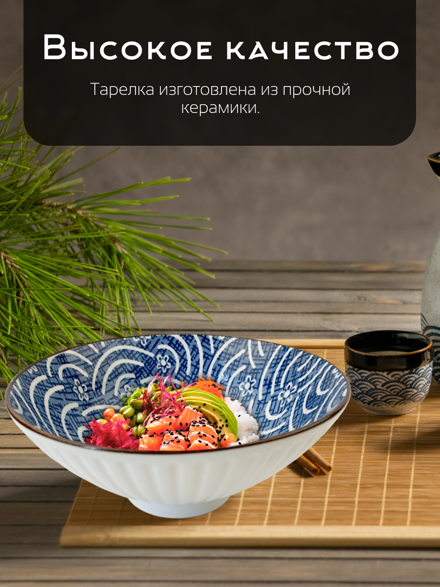 Прикоснитесь к чарующей Японии, не покидая своего дома. Керамическая тарелка для супа серии Japanese Collection – это не просто посуда, это частичка восточной философии, воплощенная в керамике. Глубокая суповая тарелка станет настоящим проводником в мир, где царит гармония природы и каждый элемент наполнен глубоким смыслом. С керамическим салатником от бренда Homium каждый прием пищи превратится в эстетическое наслаждение, а кухня наполнится атмосферой спокойствия и созерцания. Суповые тарелки имеют удобную форму и размер (диаметр 20 см, высота 7 см), а также украшена неповторимым узором. • Глубина: Она манит вас погрузиться в мир вкуса и аромата, создавая ощущение уюта и комфорта. • Благородный оттенок: Глубокий синий, цвет неба и океана, дает ощущение спокойствия и умиротворения. Белый – подчеркивает красоту и изящество узоров. • Необычное исполнение: В японской культуре цветы часто символизируют красоту, а бамбук – олицетворение стойкости и целеустремленности. Материал: • Керамика: Тщательно отобранная глина, бережно обработанная руками искусных мастеров, дарит посуде неповторимую теплоту и очарование. • Глазурь: Нежная, глянцевая поверхность отражает свет, создавая игру бликов и добавляя тарелке изысканности. Использование: • Сервировка: Тарелка для супа станет настоящим украшением вашего стола, будь то будничный ужин или торжественное застолье. • Универсальный предмет интерьера: Салатник может быть не только функциональным предметом, но и произведением искусства, которое дополнит декор кухни или гостиной. • Подарок: Тарелка станет незабываемым подарком для ценителей японской культуры и утонченной красоты. Прикоснитесь к чарующей эстетике востока с помощью глубокой керамической тарелки, созданной в лучших традициях японского дизайна!