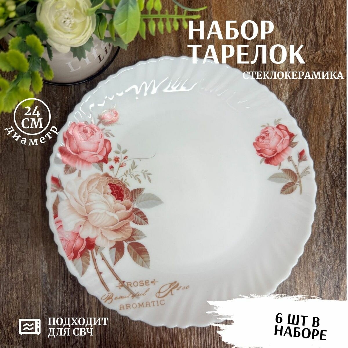 Набор тарелок обеденных 6 шт из стеклокерамики d 24 см, Розочка, Фокус: сравнение цен, характеристики, фото, актуальное наличие и цены.
