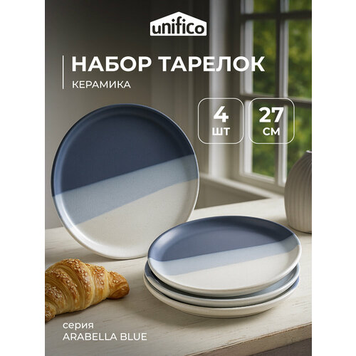 Набор обеденных тарелок 27 см коллекция Arabella blue на 4 персоны из керамики идеален как для праздничной сервировки стола, так и для повседневной подачи блюд.