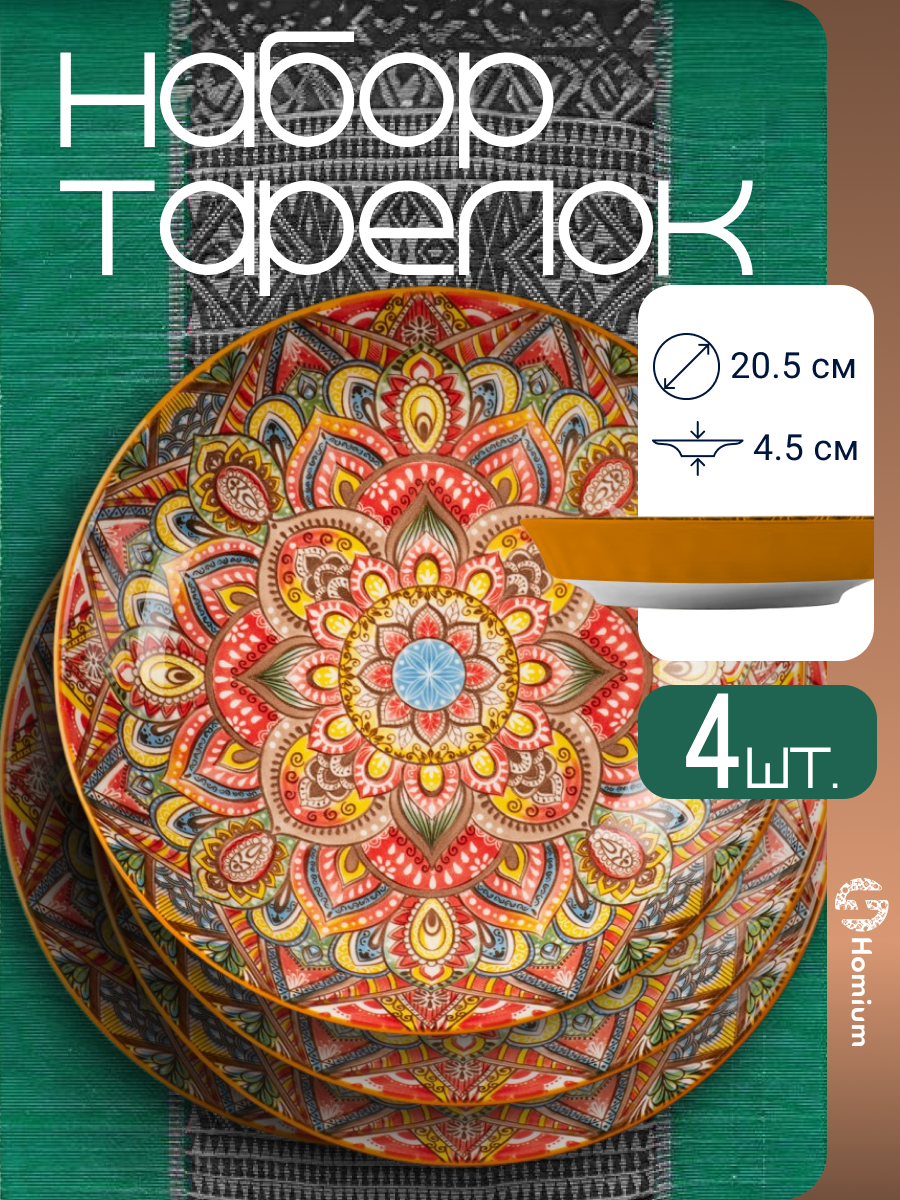 Homium Набор тарелок из 4 штук сервировочных для вторых блюд Kitchen Multi серии Мехроб.