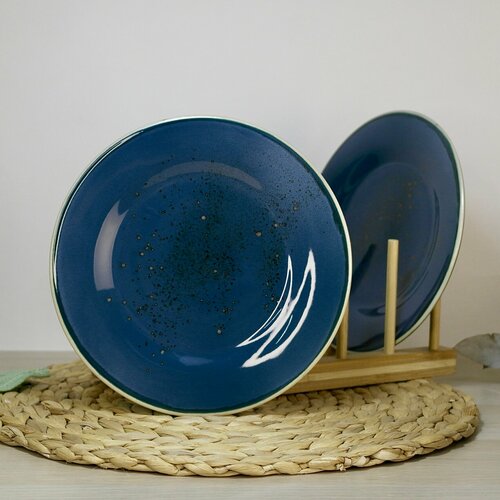 Набор из 2х плоских синих тарелок диаметром 20 см "Блу Реаттиво" из толстостенного фарфора.
