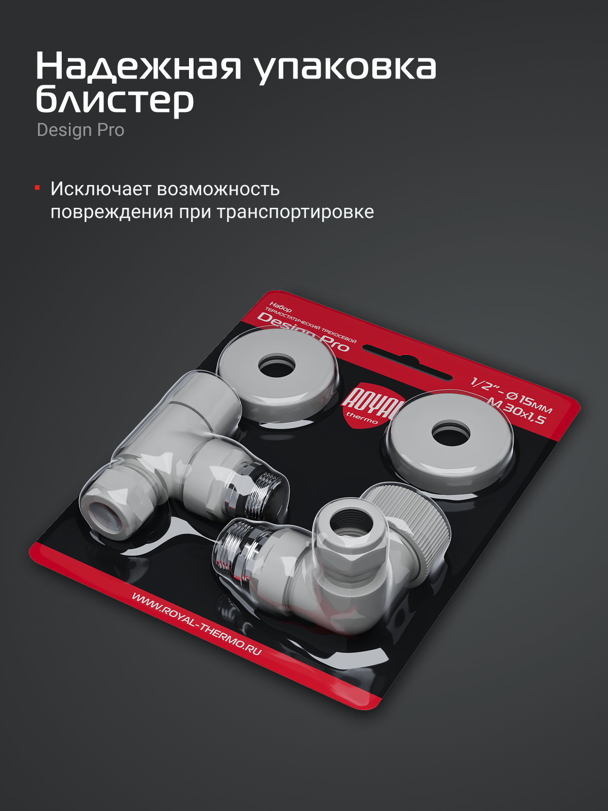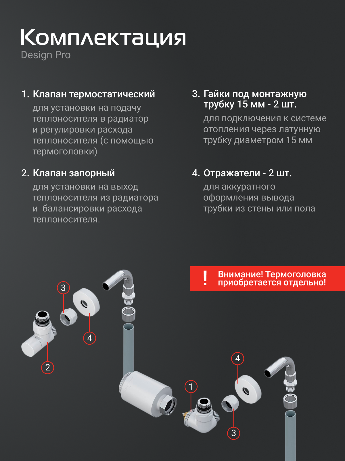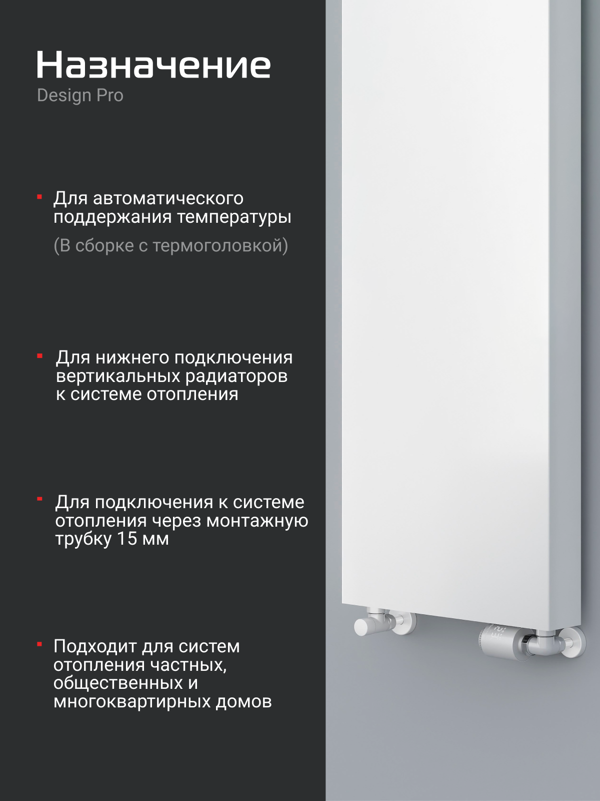 Набор термостатический трехосевой ROYAL THERMO Design Pro для радиатора предназначен для использования в системах водяного отопления.