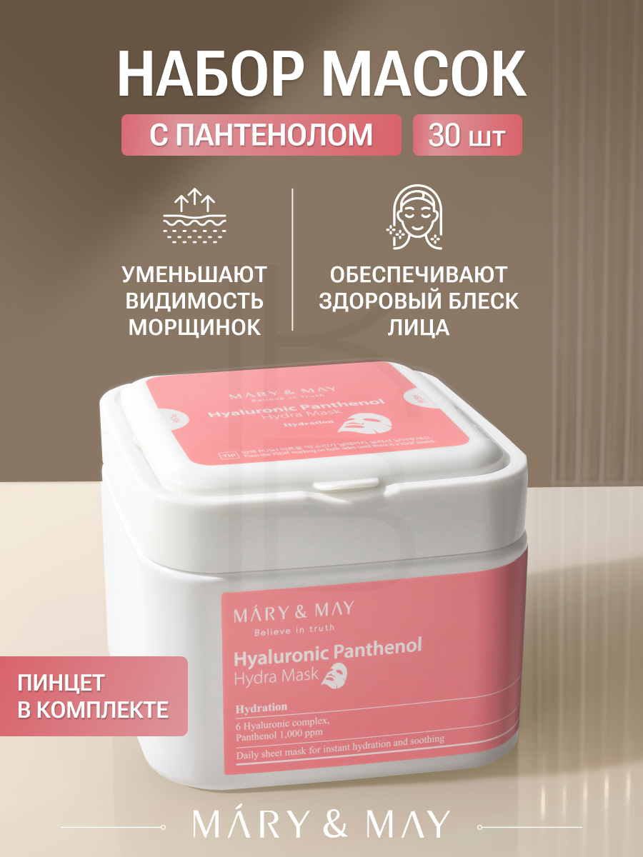 Набор тканевых масок c пантенолом | Mary&May Hyaluronic Panthenol Hydra Mask 30ea: сравнение цен, характеристики, фото, актуальное наличие и цены.