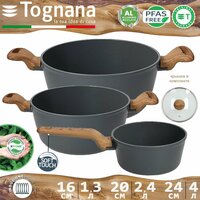 Купить Набор Tognana T-care ковш 16 см 1.3 л, кастрюля 20 см 2.4 л, 24 см 4 л с крышками с доставкой по всей России. Набор Tognana T-care ковш 16 см 1.3 л, кастрюля 20 см 2.4 л, 24 см 4 л с крышками: сравнение цен, характеристики, фото, актуальное наличие и цены.