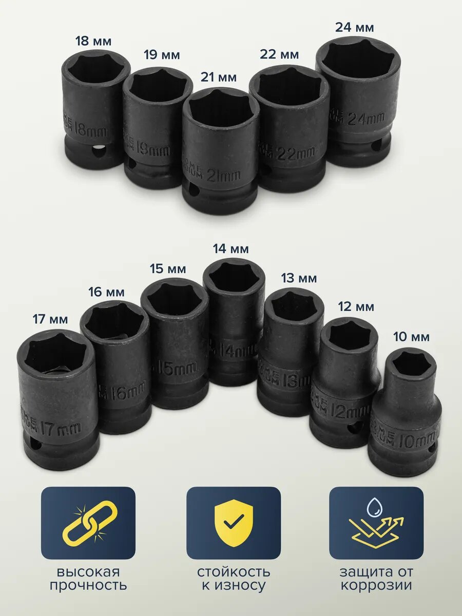 Набор торцевых 6-гр. ударных головок, 12 штук: сравнение цен, характеристики, фото, актуальное наличие и цены.