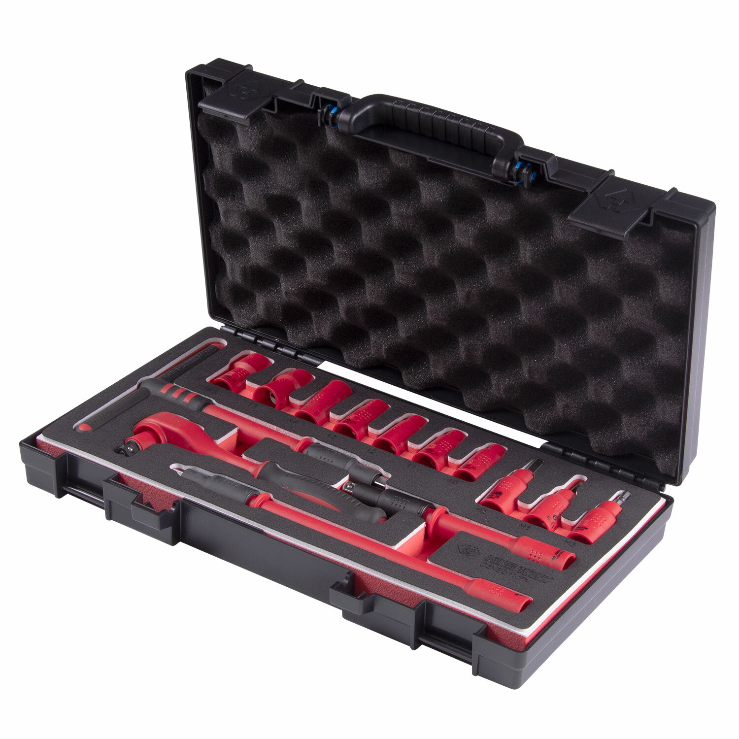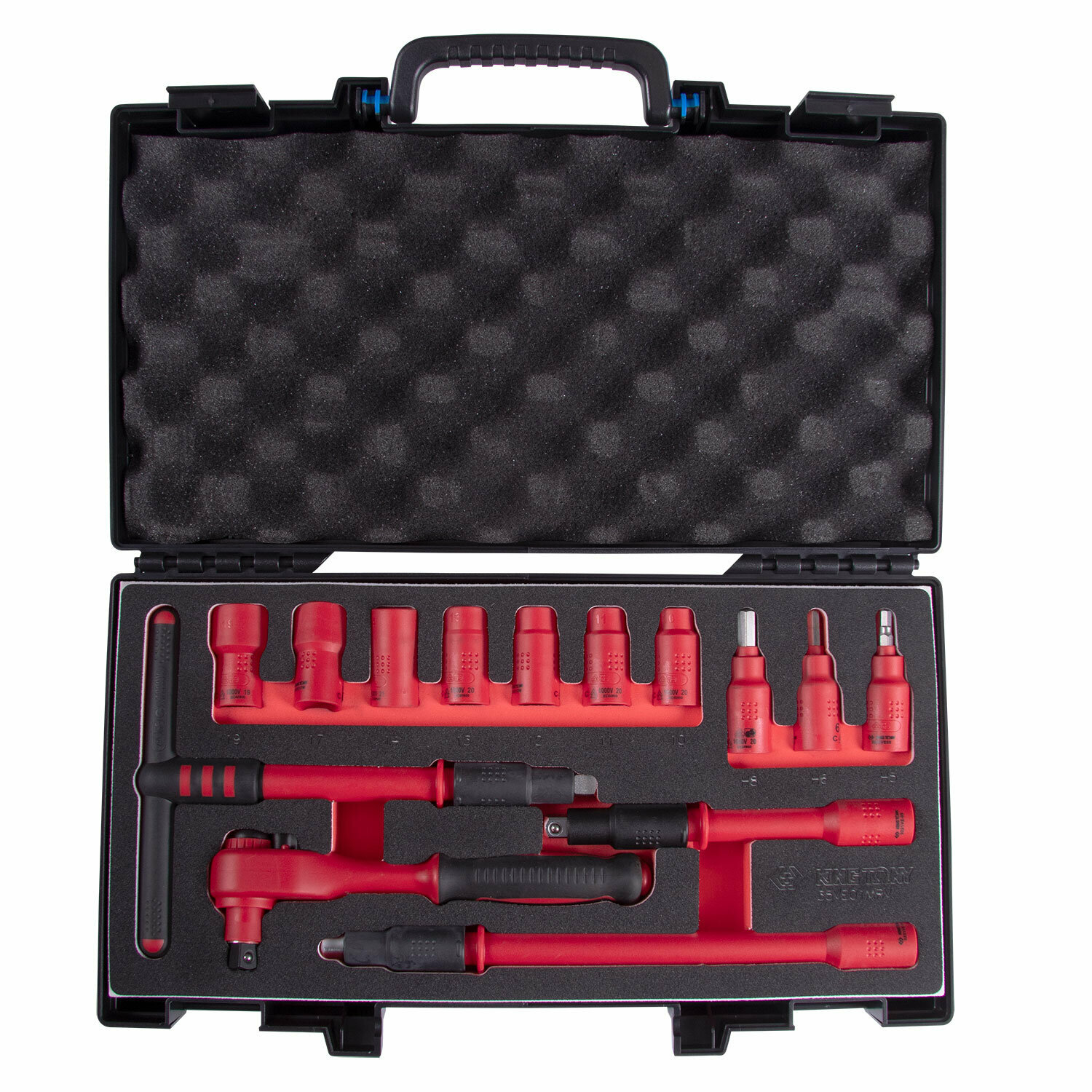 Купить Набор торцевых диэлектрических головок с принадлежностями 3/8″, шестигранные, 10-19 мм, 14 предметов KING TONY 35VE01MRV с доставкой по всей России.