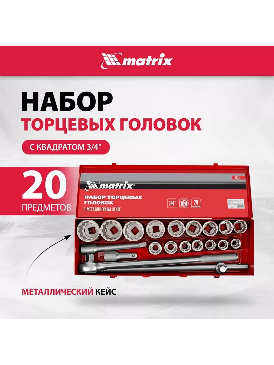 Набор торцевых головок 19 х 50 мм, 20 предм, MATRIX 13536: сравнение цен, характеристики, фото, актуальное наличие и цены.