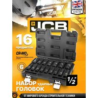 Набор торцевых 6-гранных ударных глубоких головок 1/2" от бренда JCB, 16 предметов в ложементе — надежный инструмент для сложных задач.