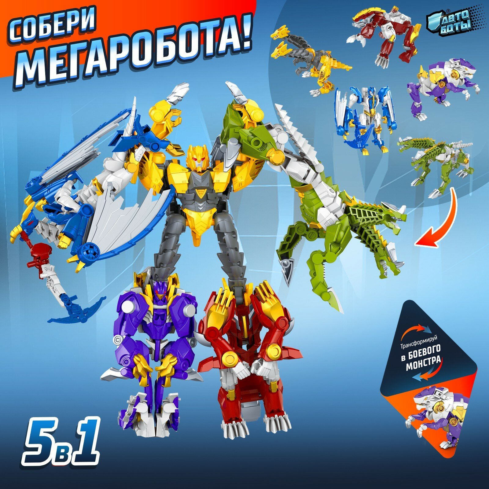 В наборе 5 трансформеров, можно собрать в одного бота.