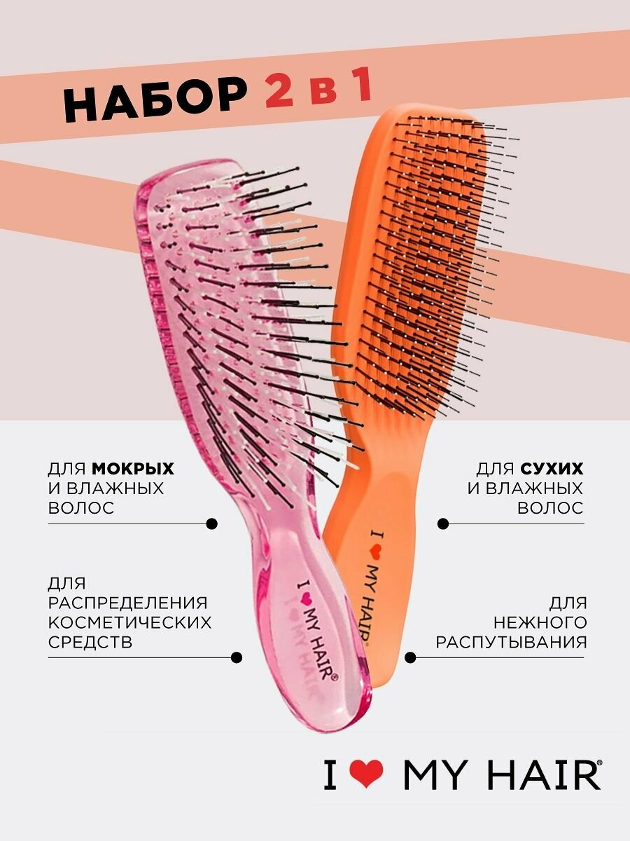 Купить Набор TRAVEL 2 в1 расческа для волос, размер S, I LOVE MY HAIR с доставкой по всей России.