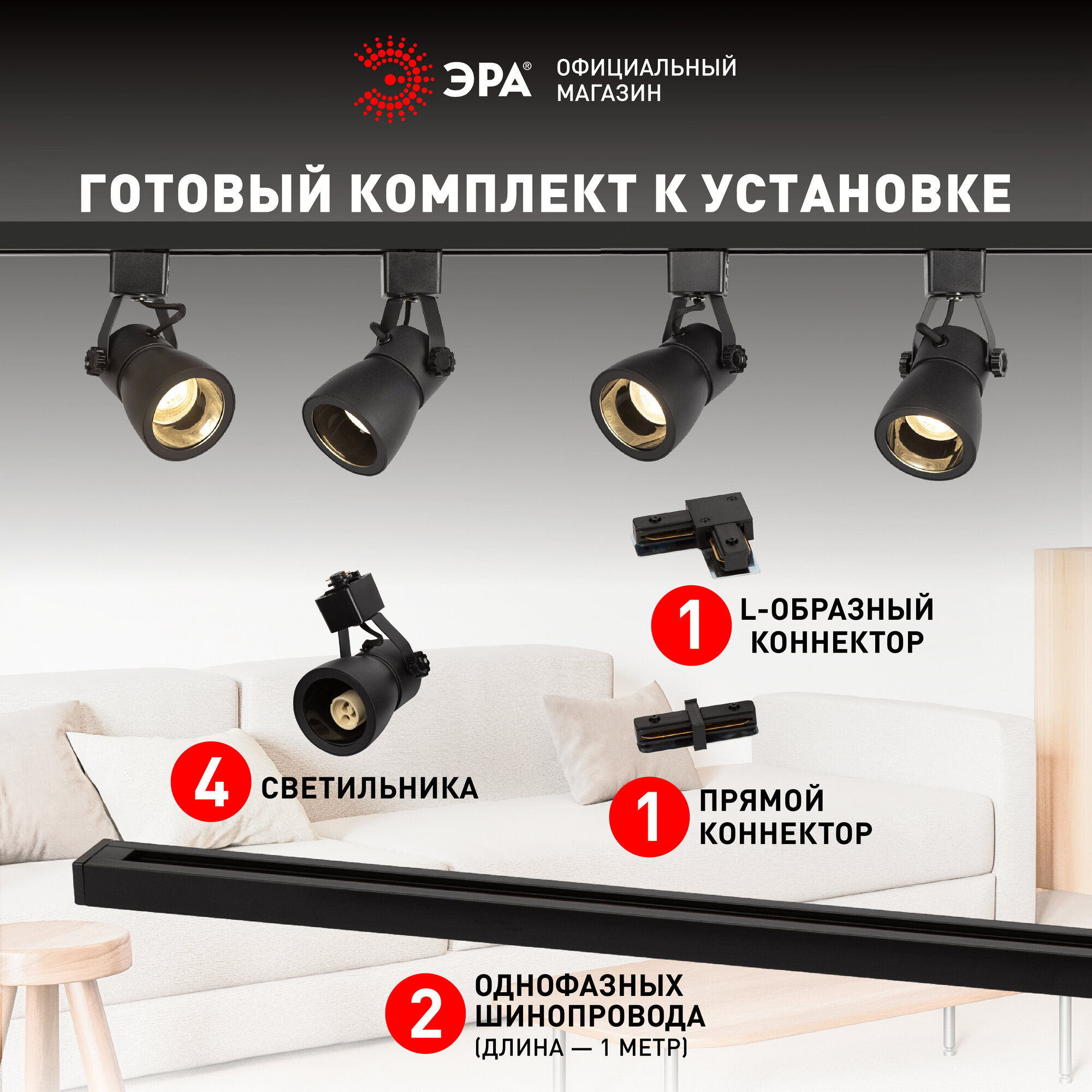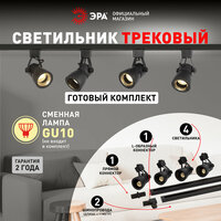 Набор трековых светильников 4шт однофазный потолочный под лампу GU10 с шинопроводом черный ЭРА: сравнение цен, характеристики, фото, актуальное наличие и цены.