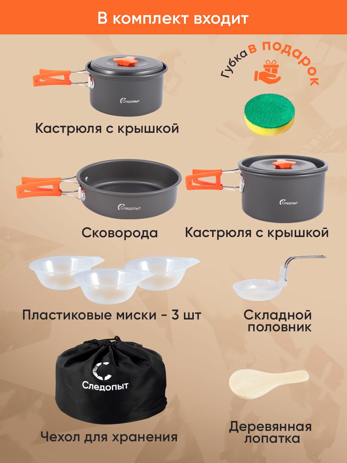 Купить Набор туристической посуды на 4 персоны 10 предметов / Походный набор посуды для кемпинга, пикника, рыбалки / Сковорода, кастрюля, в чехле с доставкой по всей России. Набор туристической посуды на 4 персоны 10 предметов / Походный набор посуды для кемпинга, пикника, рыбалки / Сковорода, кастрюля, в чехле: сравнение цен, характеристики, фото, актуальное наличие и цены.