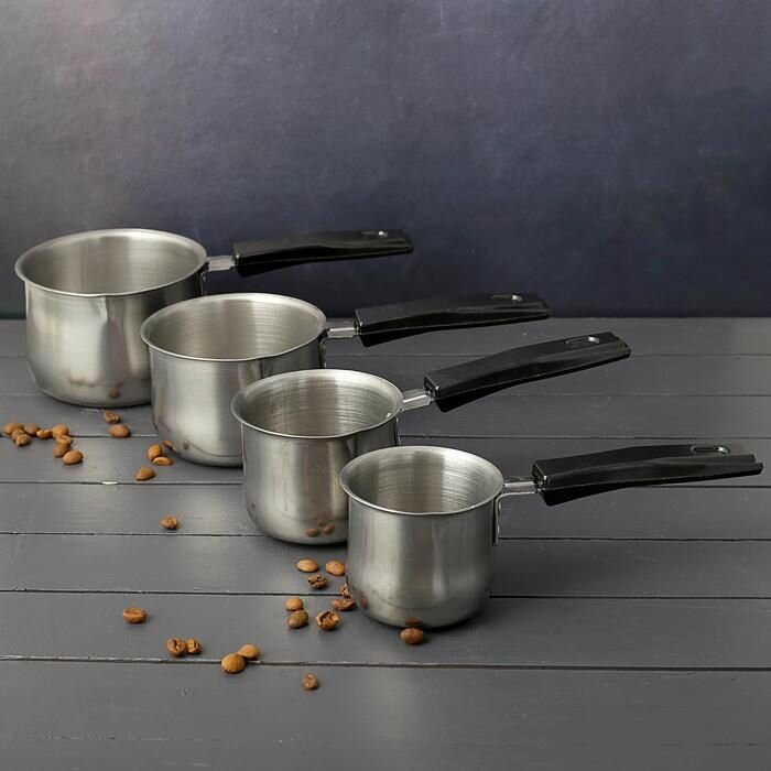 Набор турок для кофе с ручками «Аромат», 4 шт: 300 мл, 250 мл, 180 мл, 140 мл, нержавеющая сталь: сравнение цен, характеристики, фото, актуальное наличие и цены.