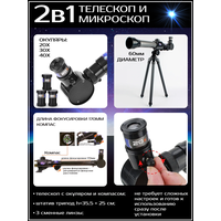Детский набор ученого телескоп астрономический с линзами 20х, 30х, 40х и микроскоп с увеличением 100х, 200х, 450х: сравнение цен, характеристики, фото, актуальное наличие и цены.