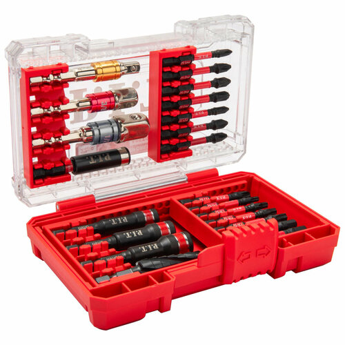 В состав набора входят Биты ударные 50 мм: PH1, PH2 (2 шт.), PH3, PZ1, PZ2 (2 шт.), PZ3, T15, T20, T25, T30 H5, H6 Держатель бит 75 мм Торцевые ударные головки: 6 мм, 8 мм, 10 мм Адаптеры для головок: 1/2", 3/8", 1/4" Ступенчатое сверло по металлу 4 - 12 мм