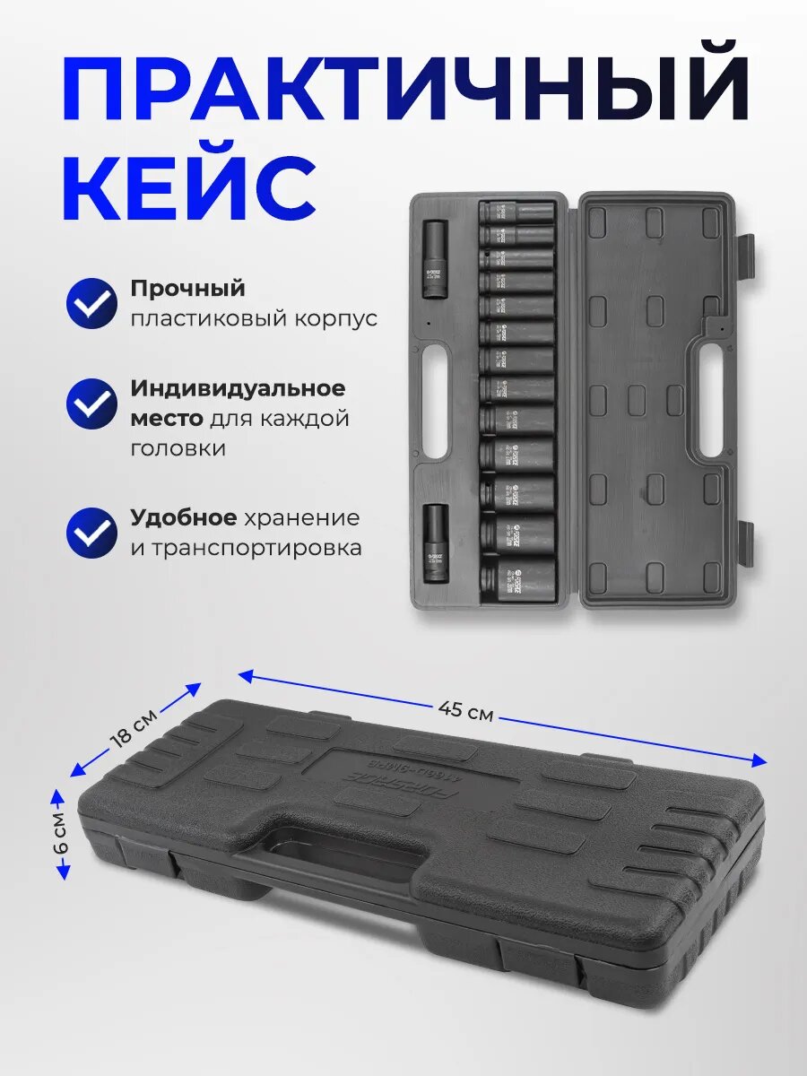 Набор ударных глубоких головок, 15 штук: сравнение цен, характеристики, фото, актуальное наличие и цены.