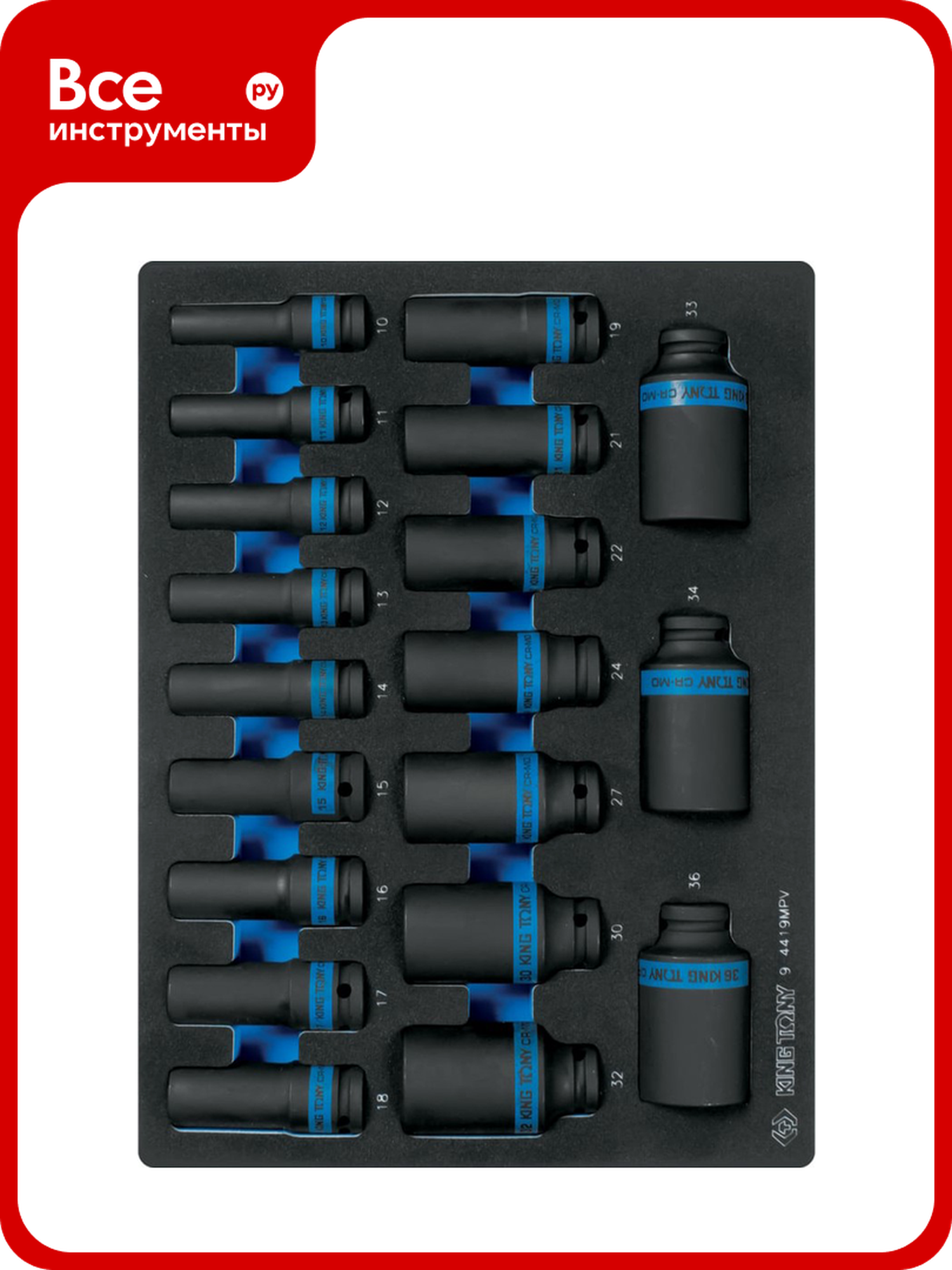 Набор ударных глубоких торцевых головок 1/2″, шестигранные, 10-36 мм, ложемент, 19 шт. KING TONY 9-4419MPV: сравнение цен, характеристики, фото, актуальное наличие и цены.
