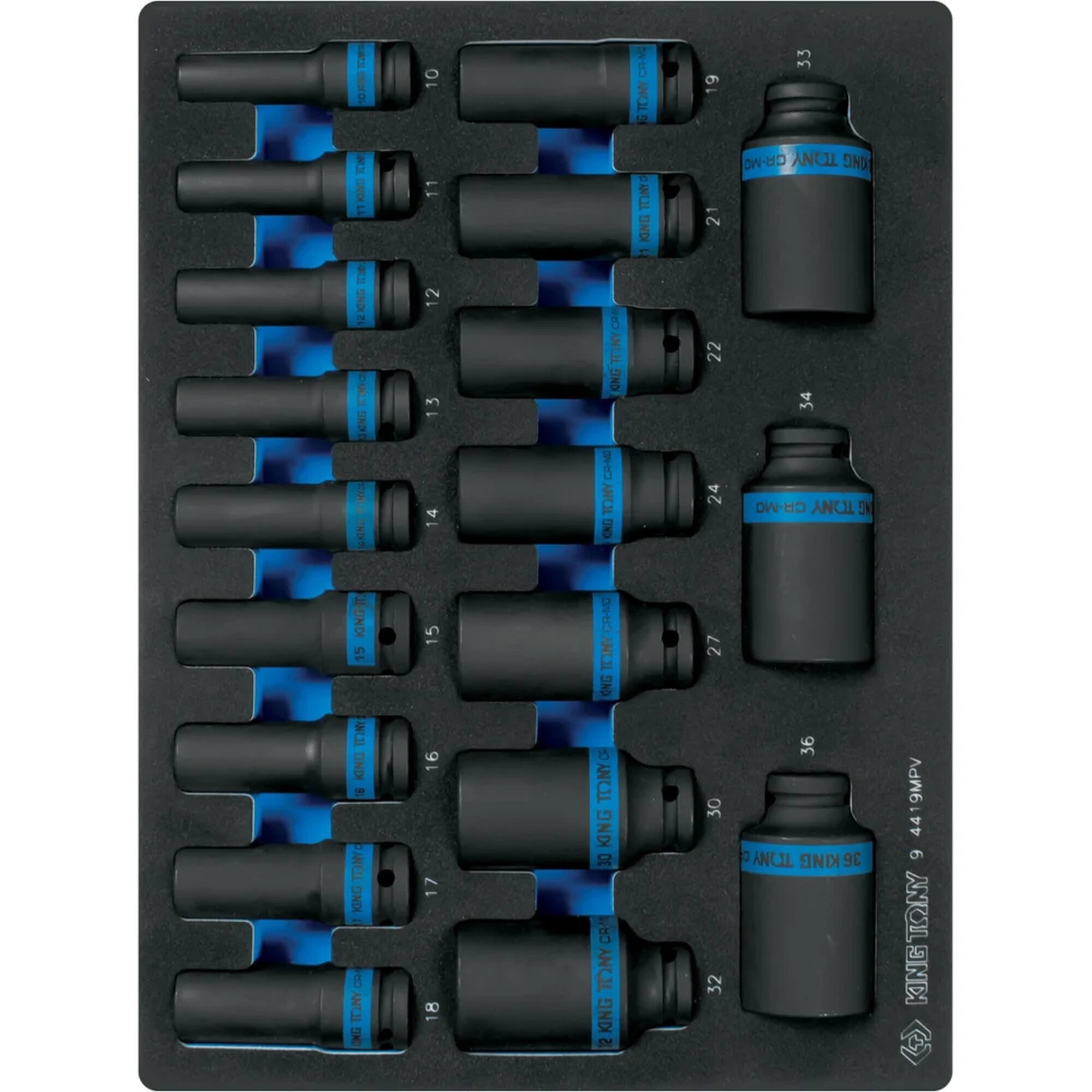 Купить Набор ударных глубоких торцевых головок 1/2″, шестигранные, 10-36 мм, ложемент, 19 шт. KING TONY 9-4419MPV с доставкой по всей России.