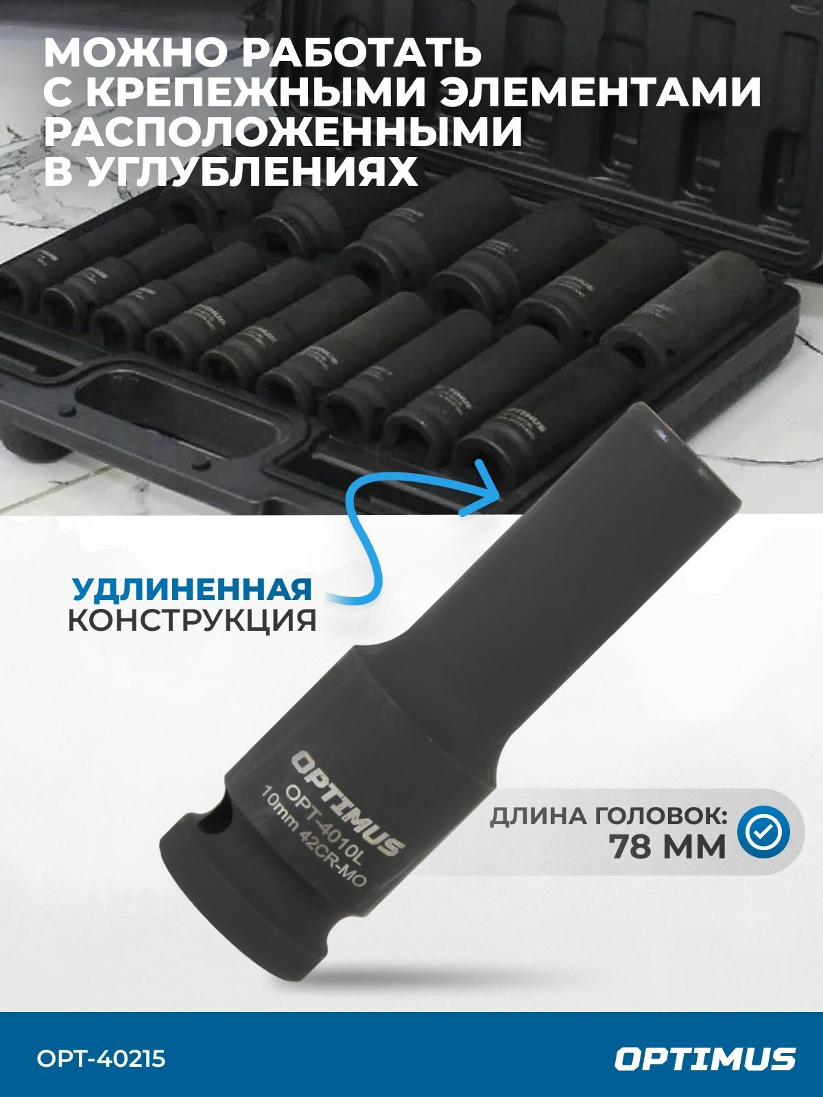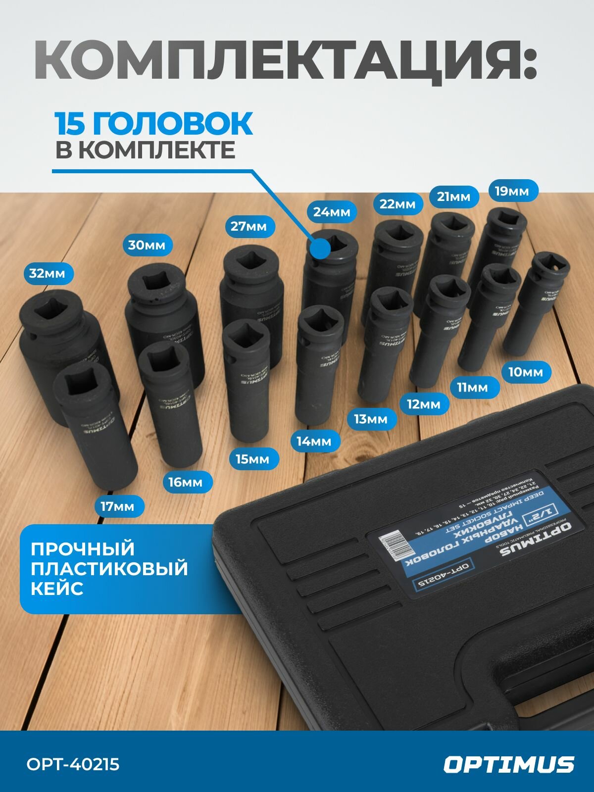 Купить Набор ударных головок глубоких 1/2″ 15 предметов, 10-32 мм OPT-40215 OPTIMUS HD с доставкой по всей России.