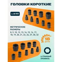 18 шт. Короткие головки 6 граней: 8, 9, 10, 11, 12, 13, 14, 15, 16, 17, 18, 19, 20, 21, 22, 24, 27, 30, 32 мм
