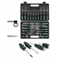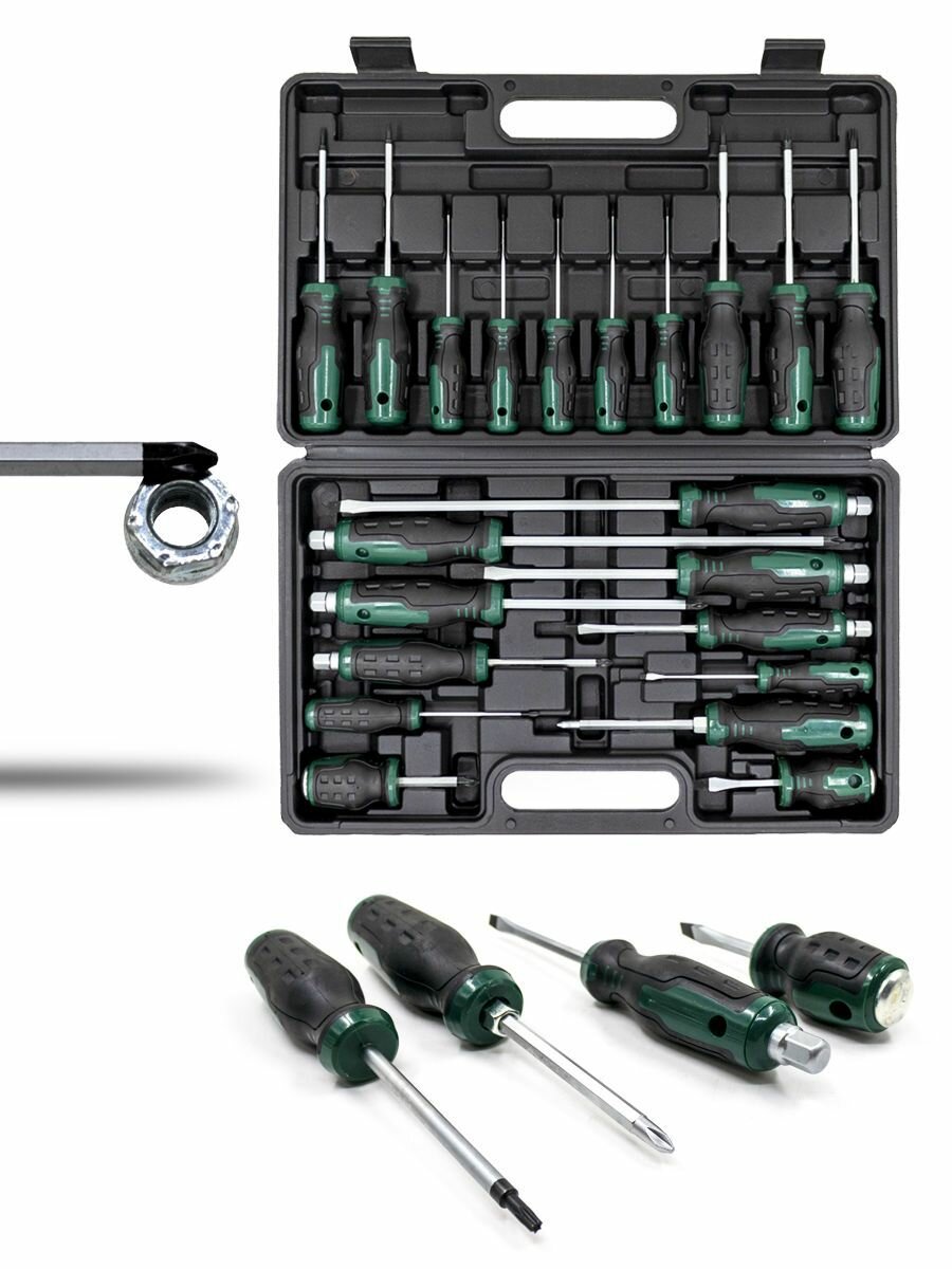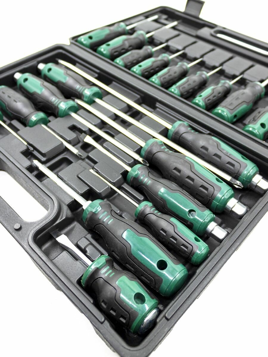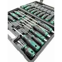 Удобное хранение и перенос обеспечивается за счет специального кейса, который поставляется вместе с набором. Кейс позволяет аккуратно хранить и переносить отвертки, предотвращая их повреждение и потерю.