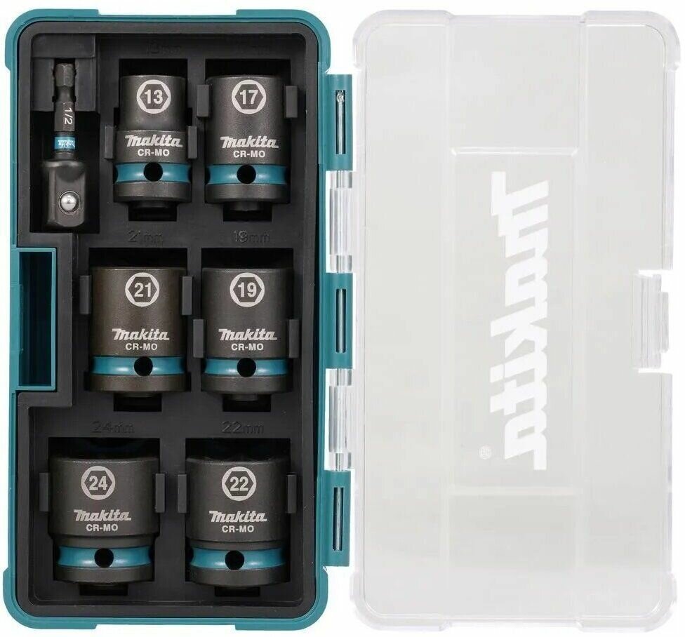 Набор ударных торцовых головок Impact Black (7 шт; 13, 17, 19, 21, 22, 24 мм; адаптер; 1/2″) Makita E-16592: сравнение цен, характеристики, фото, актуальное наличие и цены.