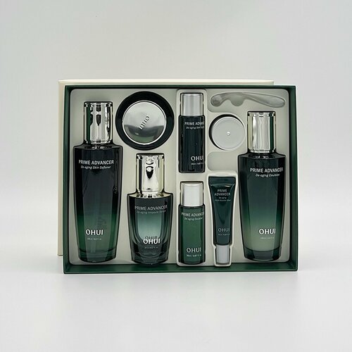 Бонусы и миниатюры: тонер OHUI Prime Advancer Softener 20мл, эмульсия OHUI Prime Advancer Emultion 20мл, ампульная сыворотка OHUI Prime Advancer De-Aging Ampoule Serum 20мл, OHUI Prime Advancer De-Aging PDRN Booster Shot10мл, крем для глаз OHUI Prime Advancer De-Aging Eye Cream 5 мл