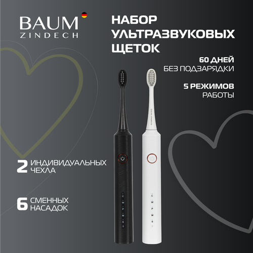 | Подробная комплектация | 2 электрические зубные щетки, 6 насадок, 2 станции для зарядки, инструкция, коробка, чехол для каждой щетки |