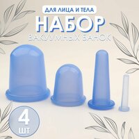 Купить Набор вакуумных банок для массажа, силиконовые, d 7/5,5/3,9/1,6 см, 4 шт, цвет голубой с доставкой по всей России.