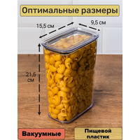 Контейнеры для хранения DD Style – идеальное решение для организации хранения сыпучих продуктов на вашей кухне. Благодаря удобной форме контейнеры для круп удобно ставить друг на друга и комбинировать на полке, таким образом банки под крупы заполняют и эффективно используют все пространство. Банка для хранения позволит организовать пространство на кухне, сделать его более системным, а также избавит вас от визуального шума. Емкости для хранения изготовлены из прозрачного пищевого пластика, прочного и практичного, а крышка имеет уплотнитель из эластомера (силикона), что позволяет ей плотно закрываться и надежно защищать содержимое от влаги, запахов и других внешних влияний - контейнер с силиконовой крышкой такого типа защищает сыпучее. Благодаря тому, что при изготовлении использован 100% пищевой пластик, контейнеры абсолютно безопасны для детского питания и семейного использования. Данные контейнеры произведены в России.