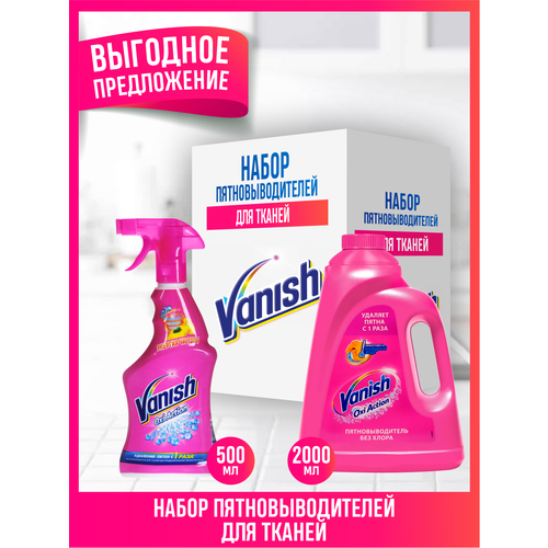 Купить Набор VANISH OXI Action Пятновыводитель для тканей и обработки пятен 500мл спрей + Пятновыводитель 2 л с доставкой по всей России.