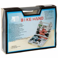 spoke wrench 10G-15G (YC-8A) Универсальный набор инструментов Bike Hand YC 735A, аптечка, монтировки, выжимка, ключи, отвертки, съемники и пр, для сборки / разборки / настройки / регулировки и ремонта велосипеда, в пластиковом кейсе. Составляющие набора YC-735A. отвёртка-трансформер ( - / + ). набор монтажек. выжимка цепи. регулируемый 'шведский' ключ. набор шестигранников 2/2. 5/3/4/5/6 мм в компактном блистере. рожковый гаечный ключ 8/10 мм. шлицевой ключ для снятия и установки кассеты. мощный шестигранник (8 мм) для снятия, установки, и протяжки шатунов. ключ (15 мм) для снятия и установки педалей. ключ для снятия трещотки. ключ для обслуживания разборных кареток. шлицевая отвёртка (3 мм). ключ для обслуживания резьбовых рулевых колонок (30/32/36/40 мм). шлицевой спец-ключ для снятия и установки кассеты. набор 'конусных' ключей для обслуживания втулок на насыпных подшипниках (13/14/15/16 мм). шлицевой спец-ключ для снятия и установки каретки картриджного типа. комплект для ремонта камер. съёмник шатунов. спицевой ключ