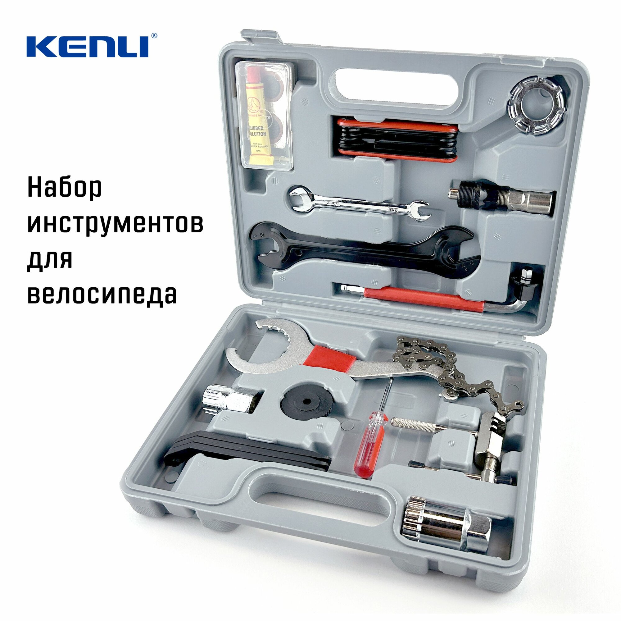 Набор велосипедных инструментов в чемодане Kenli KL-9810A, 17 предметов