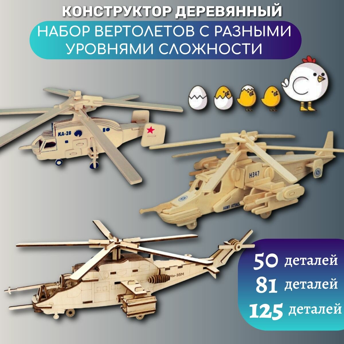 Купить Набор вертолетов, 3 вида, деревянный конструктор Чудо-дерево с доставкой по всей России.