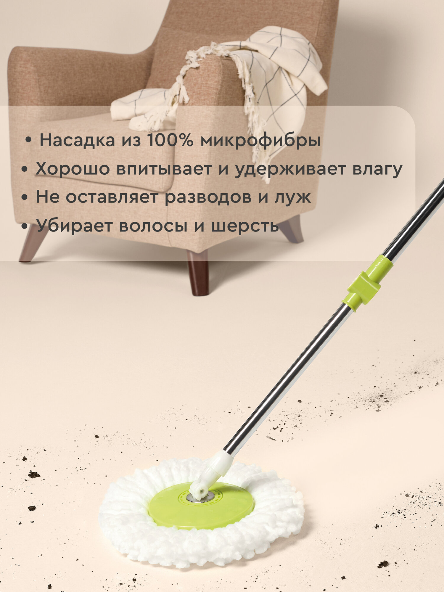 Умная швабра с отжимом и ведром. для мытья полов 10 литров с насадками для швабры 4 шт BIRDS AND FISH