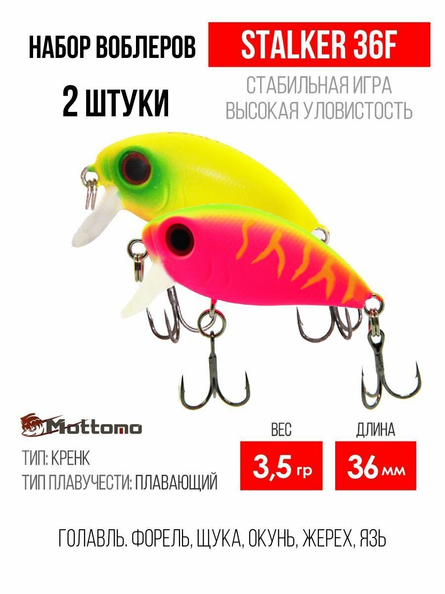 Купить Набор воблеров для рыбалки Mottomo Stalker 36F «2 в1» , крэнк плавающий для спиннинга. Приманка на голавля, форель. с доставкой по всей России.