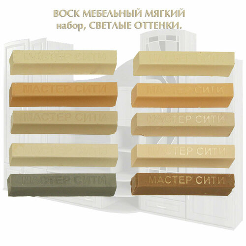 Набор воска мебельного мягкого мастер сити, 10 цветов. (Светлые тона)