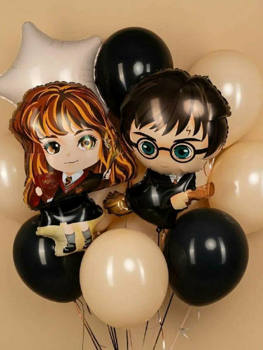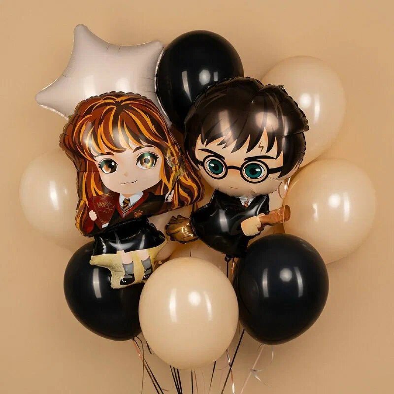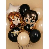Набор воздушных шаров для фотозоны в стиле Гарри Поттера. Шары создадут волшебную атмосферу и наполнят пространство сказкой. В составе 2 фольгированных шара фигуры : Гарри Поттер и Гермиона , 1 фольгированная звезда 8 латексных шариков.